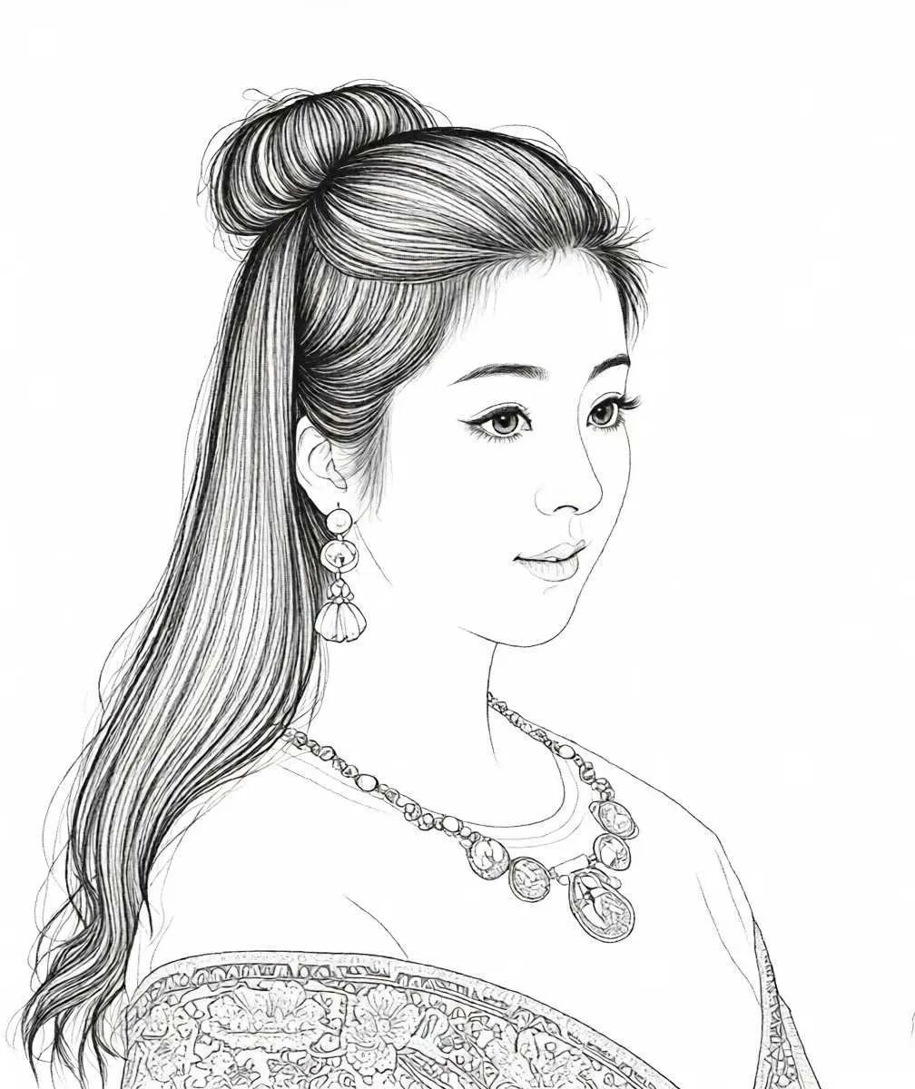 2025-11-29分享一组工笔人物彩图+线稿,拿来即用
